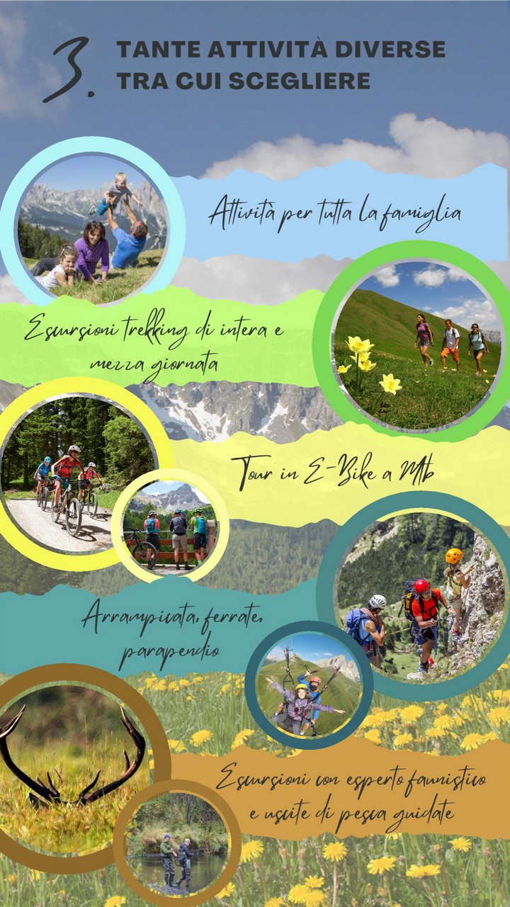La nostra posizione ci permette di essere un ottimo punto di partenza sia per le escursioni estive sulle Dolomiti che ci circondano, sia per le sciate nei comprensori facilmente raggiungibili: Alpe Lusia - San Pellegrino - Falcade, Predazzo - Pampeago - Latemar - Obereggen, Vigo di Fassa - Pozza di Fassa, Canazei, Lago di Carezza.